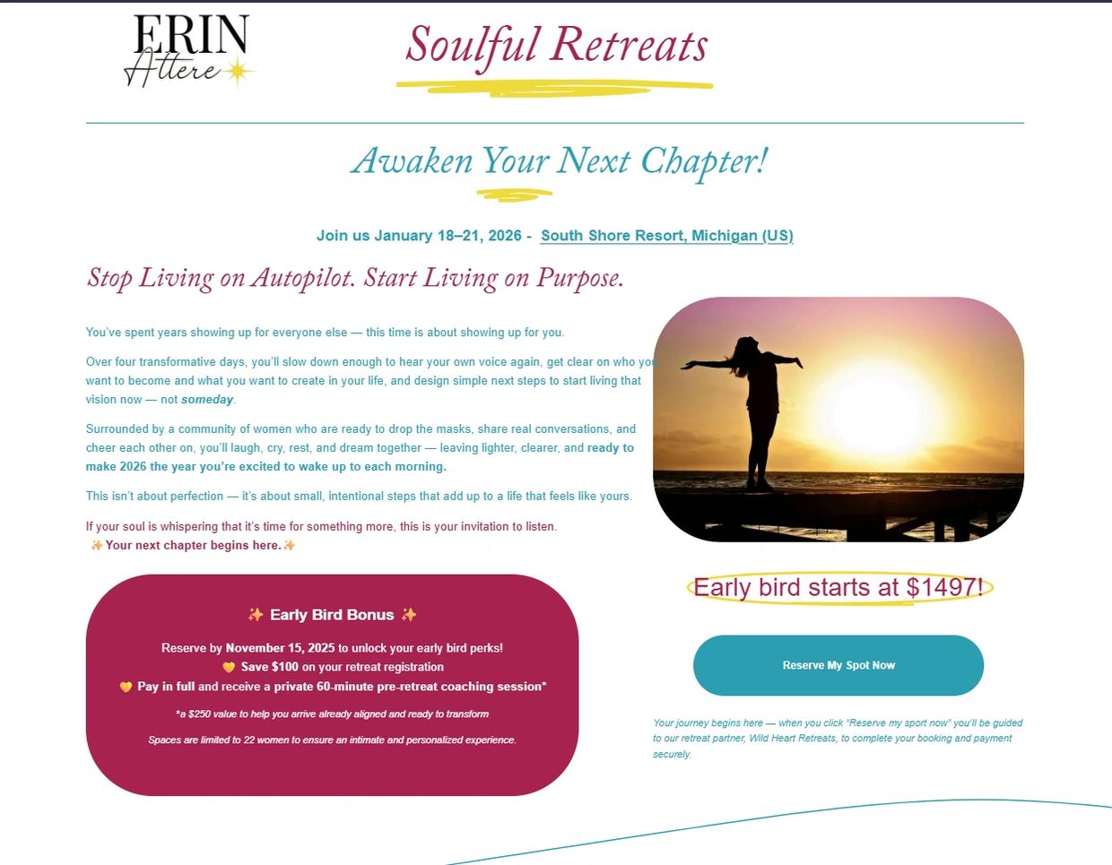 I am thrilled to once again collaborate with dear friend and colleague Erin Attere on our next soulful retreat!